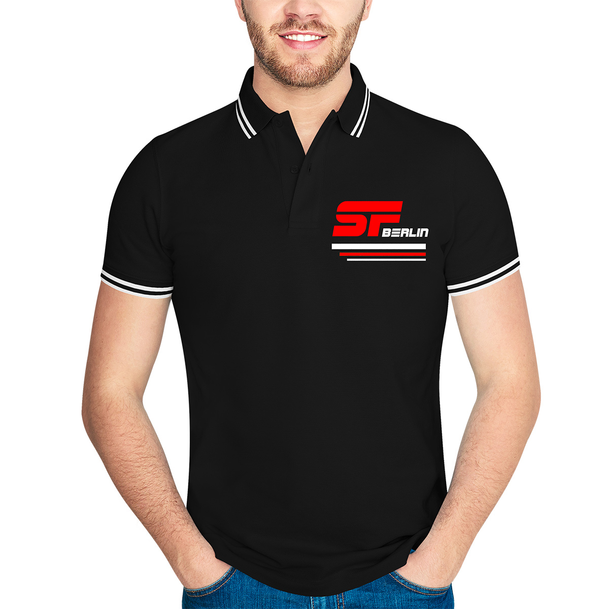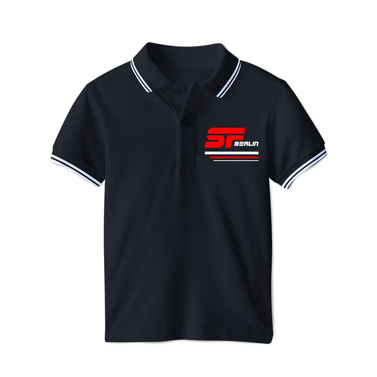 • Kontrastierende Rippbündchen an Arm- und Halsausschnitt
